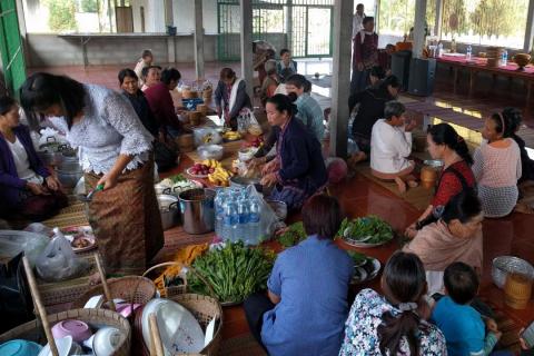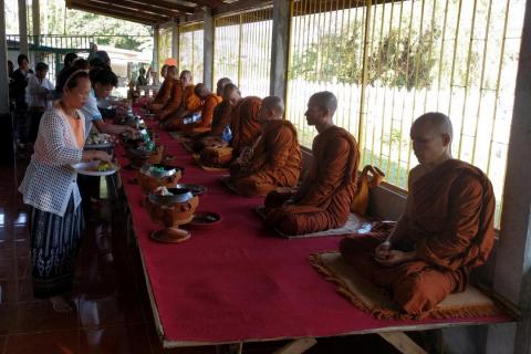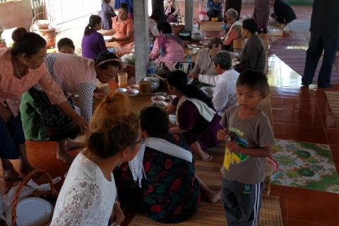My visit coincided with the opening ceremony for the school, an event which many from the village enjoyed. The pictures show the monks blessing the new building, people from the village making offerings and the meal they shared together.